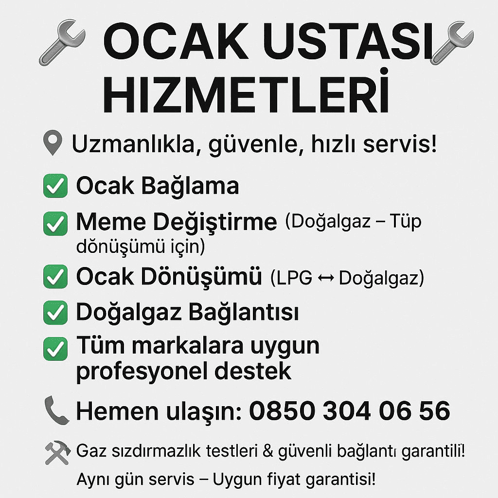 Ocak ustasıyla doğalgaz bağlantısı artık çocuk oyuncağı! Sadece arayın, ustamız kapınıza gelsin.